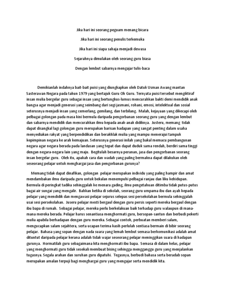 Hal ini adalah satu cara untuk menjadi individu kebanggan keluarga. Cara Menghargai Jasa Guru. Usaha menghargai jasa guru - karangan tahap pt3 april 13.