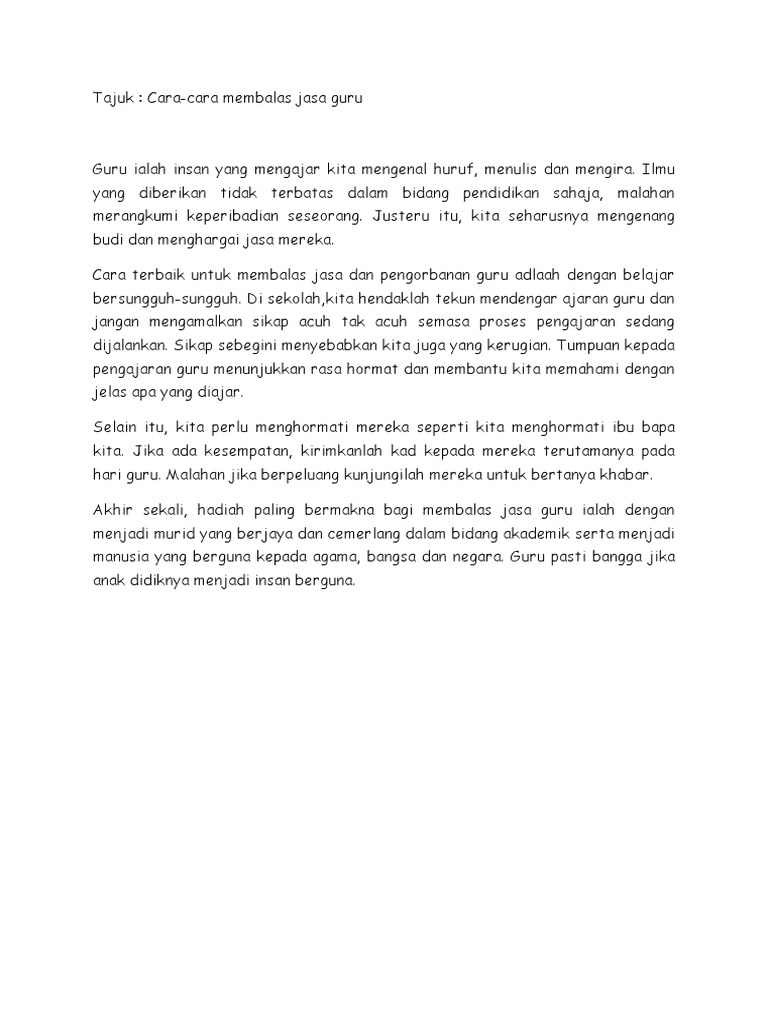 Seorang yang sedar akan kesilapan. Cara-Cara Menghargai Jasa Guru Contoh Karangan Contoh Karangan Cara-Cara Menghormati Guru. Anak-anak juga boleh memberikan sedikit wang perbelanjaan kepada ibu bapa mereka sebagai tanda terima kasih kepada ibu bapa.